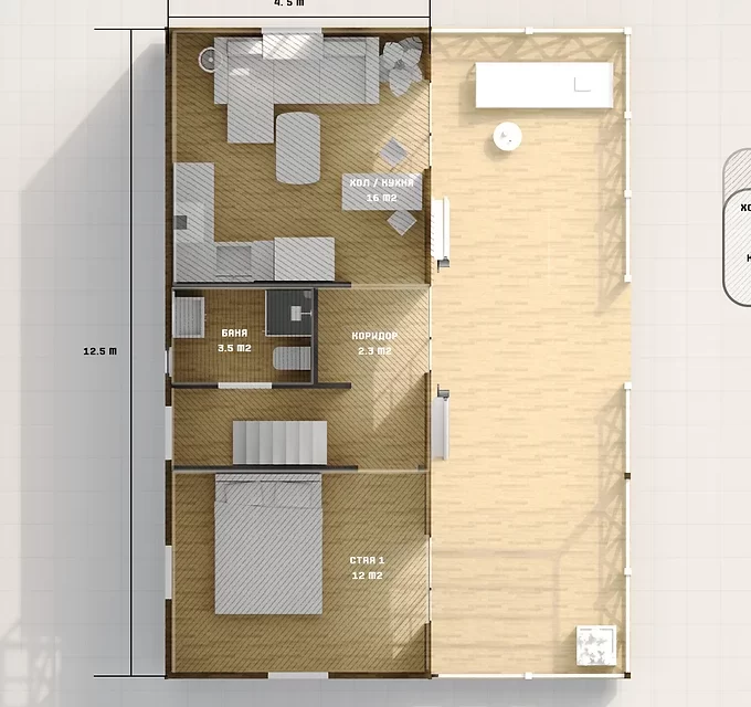 První patro: 4,00 x 11,5 m = 46 m²