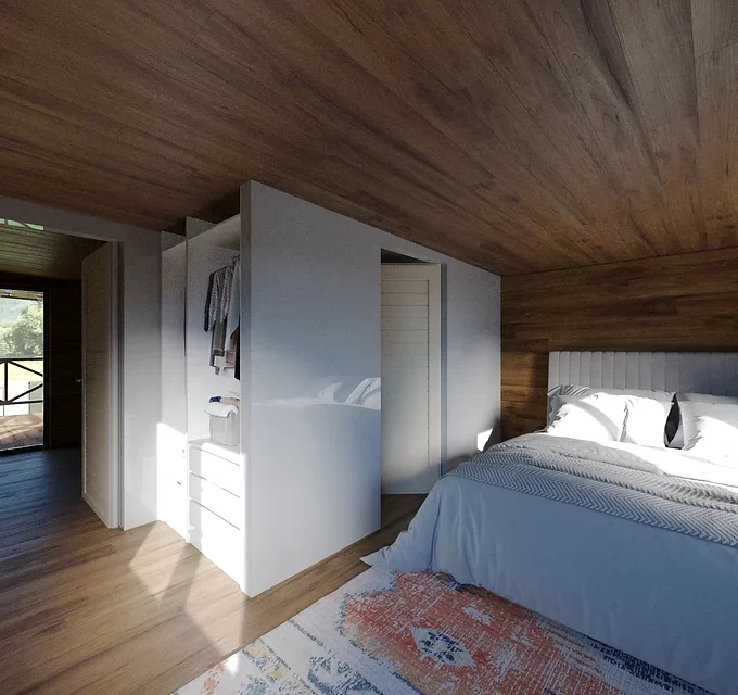 Jeho jedinečná fasáda a vertikální design poskytují maximální soukromí a styl, zatímco otevřený obývací pokoj, kuchyň a útulná ložnice ve druhém patře vytvářejí pocit tepla a pohodlí v každém koutě. Ideální pro pár nebo sólo bydlení s uměleckým nádechem.