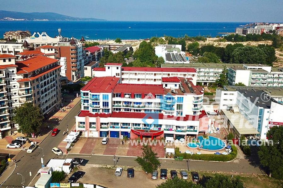 Reality Bulgaria® exkluzivně nabídzí pěkné studio s výhledem na bazén v hotelu Esperanto jen 100 m od pláže.