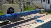 Dům je vybavený klimatizacemi, na zimu kotlem na pelety a také krbem.