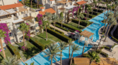 Studia s terasou nebo zahradou, jednopokojové apartmány s terasou nebo zahradou či penthousem, dvoupokojové apartmány se zahradou nebo terasou nebo penthousem či zahradou a soukromý bazén a vily.