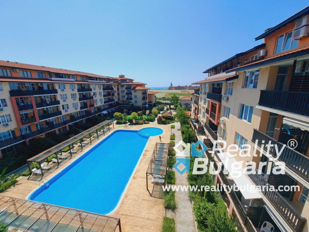 Nabízíme k prodeji  pěkný apartmán 2+kk (obývací pokoj s kuchyní + 1 ložnice) v komplexu Chateau Aheloy 2, o rozloze 65 m2, ve 3. patře s výtahem.