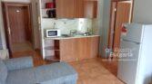 vstupní hala, prostorný obývací pokoj s kuchyňským koutem, toaleta, ložnice, koupelna s toaletou a jeden balkón se vstupy jak z obývacího pokoje, tak i z ložnice s výhledem na moře.